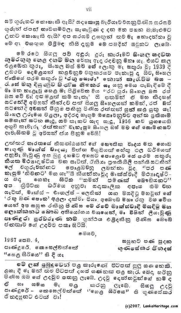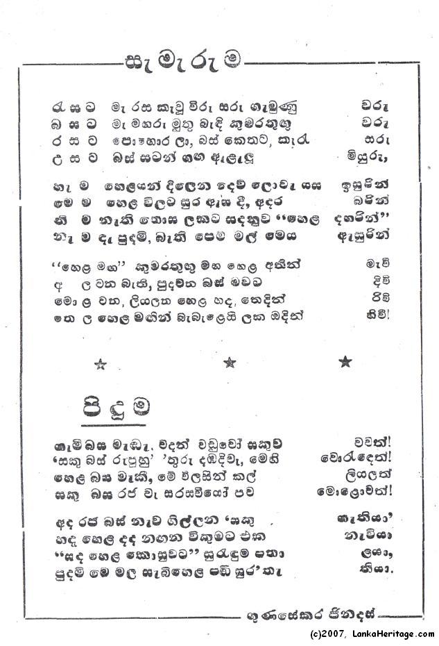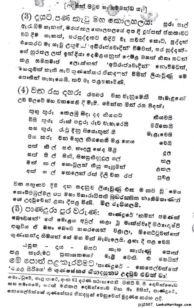 Ginadasa Gunasekera affectionately known by the Hela Name Gunesekera Ginadasun, lived in Keleswatta, Panadura, Sri Lanka and was an author of many sinhala books. In the following pages, please read several books by Gunasekera Ginadasun.