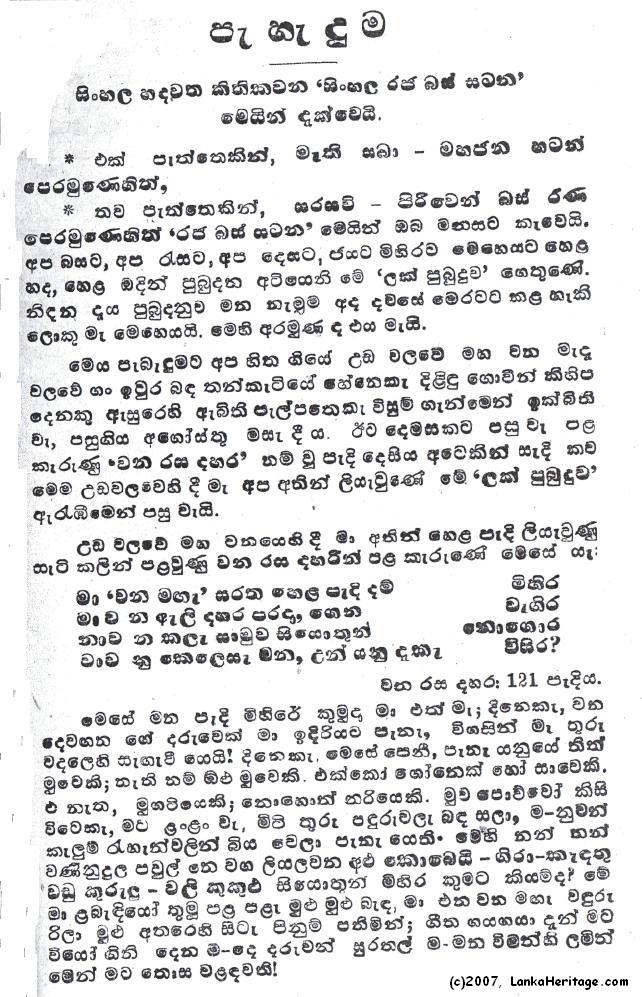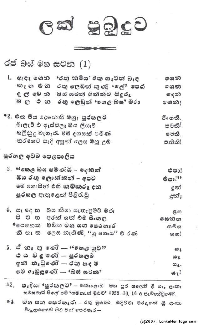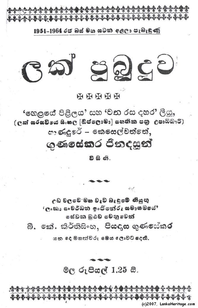 - Lak Pubuduwa is a poetry book written about the 1956 official Language struggle and the ensuing conflict. The book was first published on the Independence day, the February 4th 1967. This book spans into a total of 86 pages.